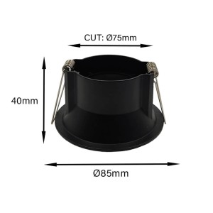 Anneau circulaire fixe noir en cone. Compatible avec les ampoules LED GU10 ou MR16 à LED.
