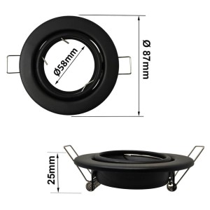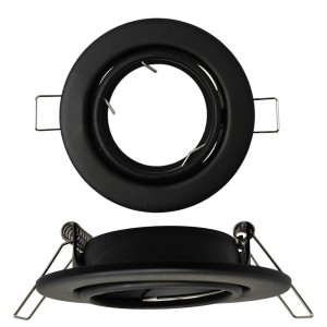 Anneau d'encastrement rond noir orientable en acier pour ampoule GU10 LED.