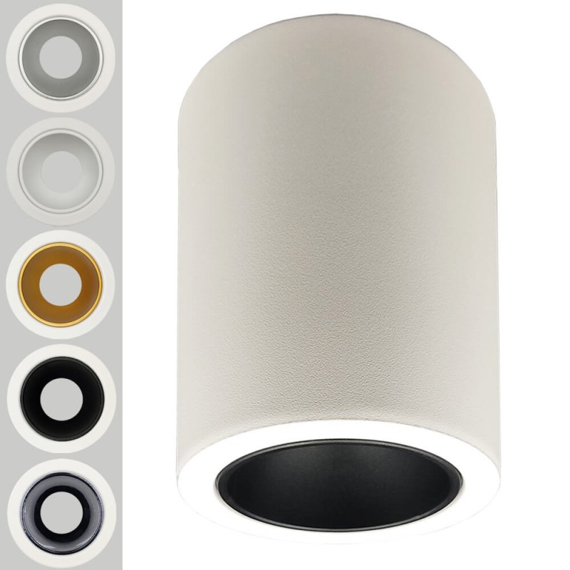 Applique de plafond pour lampes GU10. Personnalisez votre éclairage en choisissant la couleur de l'anneau intérieur basculant parmi blanc, noir, argent, doré ou noir mat.