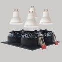 Anneaux encastrement pour GU10 carré quadruple noir - 170 mm. Choisissez votre combinaison en sélectionnant la couleur des anneaux intérieurs : blanc, noir, argent, doré ou noir mat.