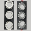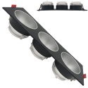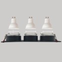 Spot encastrable triple pour GU10 noir. Choisissez votre combinaison en sélectionnant la couleur des anneaux intérieurs : blanc, noir, argent, doré ou noir mat.