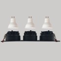 Spot encastrable triple pour GU10 noir. Choisissez votre combinaison en sélectionnant la couleur des anneaux intérieurs : blanc, noir, argent, doré ou noir mat.