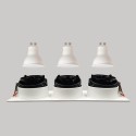 Spot encastrable triple pour GU10 blanc. Choisissez votre combinaison en sélectionnant la couleur des anneaux intérieurs : blanc, noir, argent, doré ou noir mat.