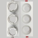 Spot encastrable triple pour GU10 blanc. Choisissez votre combinaison en sélectionnant la couleur des anneaux intérieurs : blanc, noir, argent, doré ou noir mat.
