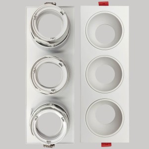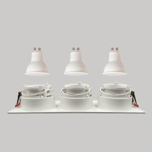 Ce spot encastrable triple est conçu pour une installation rapide et discrète. Il suffit d’effectuer une découpe dans le plafond et d’y insérer le support : le résultat est un luminaire affleurant, esthétique et parfaitement intégré à votre plafond. Sa conception intuitive facilite le montage aussi bien pour les installateurs professionnels que pour les particuliers. Une fois posé, il offre un éclairage moderne, homogène et raffiné.