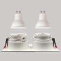 Spot encastrable double pour GU10 blanc. Choisissez votre combinaison en sélectionnant la couleur des anneaux intérieurs : blanc, noir, argent, doré ou noir mat.