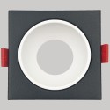 Spot encastrable noir carré simple pour GU10. Choisissez votre combinaison en sélectionnant la couleur des anneaux intérieurs : blanc, noir, argent, doré ou noir mat.