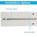 Sa longueur de 2 mètres permet de créer de véritables lignes lumineuses continues, idéales pour les grands espaces. Cette lampe peut être installée en suspension ou en surface, selon vos besoins et la configuration de la pièce. Son design minimaliste s’intègre parfaitement dans les environnements professionnels modernes tout en offrant une luminosité douce et équilibrée.