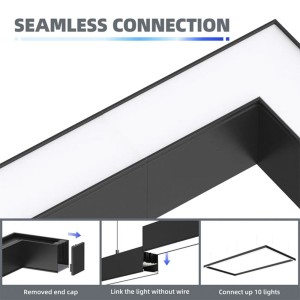 Son design interconnectable permet de relier plusieurs modules pour créer une ligne lumineuse continue, offrant un éclairage homogène et sans rupture. Les extrémités s’emboîtent parfaitement pour un effet visuel fluide et professionnel, idéal pour les open spaces, les salles de réunion ou les zones commerciales.