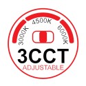 Grâce à sa température de couleur ajustable (3CCT), choisissez entre 3000K, 4500K ou 6000K selon l’ambiance souhaitée — lumière chaude pour un espace accueillant, neutre pour les zones de travail, ou froide pour un rendu plus technique et dynamique.