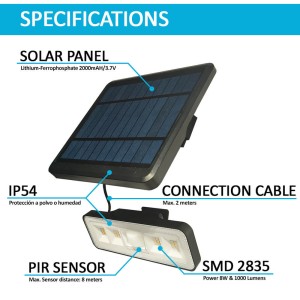 Applique Solaire LED Détachable – 1000 Lumens – Capteur PIR – 4000K – Panneau déporté 2m