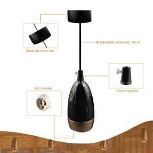 Lampe suspendue LED noir perle et cuivre pour ampoule GU10 - Design minimaliste
