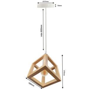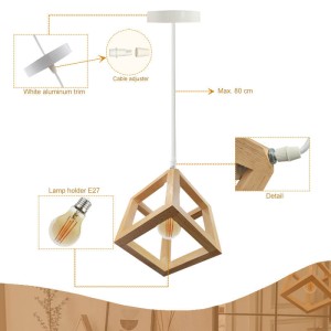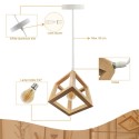 Suspension LED naturelle en bois et en forme de cube pour ampoule E27