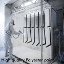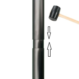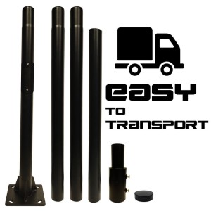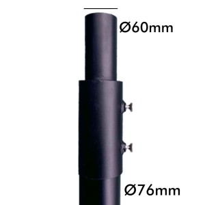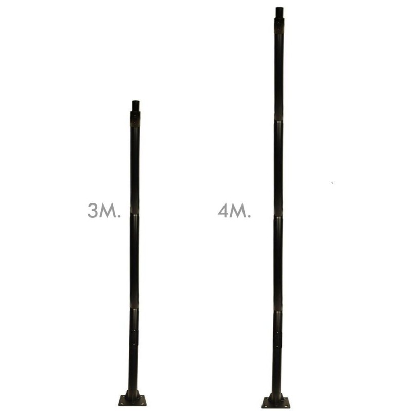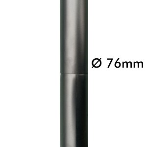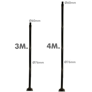 Colonne, mât. Fabriqué en tube d'acier galvanisé Ø76mm, avec une réduction à 60 mm en bout - épaisseur de 2mm, peint en noir texturé - RAL9005 - Facilité de transport et d'assemblage, peut être monté en 3 ou 4 pièces, ce qui facilite grandement l'installation par une seule personne.