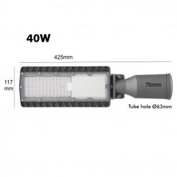 Réverbère LED 40W – Puce SMD3030 – 160lm/W – IP65 – IK10