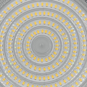 Fabriqué à partir d’un corps en aluminium haute résistance combiné à un diffuseur en polycarbonate (PC), l'éclairage LED UFO offre une excellente dissipation thermique et une résistance accrue aux chocs. Son indice de protection IP65 garantit une étanchéité totale contre la poussière et les projections d’eau, le rendant idéal aussi bien pour une utilisation intérieure qu’extérieure.