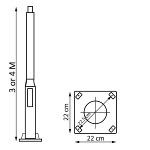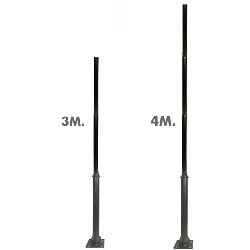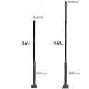 Colonne, mât, perche pour lampadaire d'éclairage public. Acier galvanisé Ø89mm finition Ø60mm, d'une épaisseur de 2mm, peint en noir texturé - RAL9005 - Facilité de transport et d'assemblage, peut être monté en 3 ou 4 pièces.