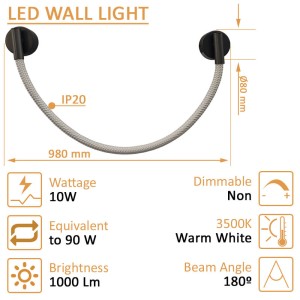 Applique murale LED 10W en corde tressée lumineuse - 3500K - 1 mètre