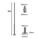 Le mât d’éclairage de 3 mètres est conçu pour une installation simple et rapide grâce à son gabarit d’ancrage et ses boulons M16 inclus. Sa terminaison standardisée permet de fixer facilement des lanternes, plaques ou boîtes à fusibles, répondant ainsi aux exigences des installations publiques et privées.