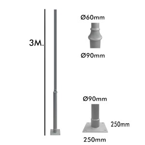 Fabriqué en tubes d'acier de 60 et 90 mm de diamètre. 3 mètres de haut. Le mât peut être livrée peinte dans la couleur souhaitée par le client: