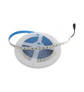 Ce ruban LED 24V DC de 5 mètres intègre 120 LED SMD2835 par mètre, pour une puissance de 18W/m et un flux lumineux intense et uniforme. Conçu pour un éclairage décoratif ou fonctionnel, il diffuse une lumière homogène à 120°, idéale pour les faux plafonds, vitrines, meubles ou espaces de travail nécessitant un éclairage puissant et continu.