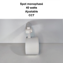 Spot LED 40 watts pour rail monophasé entièrement ajustable de 24° à 60°. Avec ses 40 watts il illumine 4800 Lumens ce qui est bien plus que les spots pour magasins conventionnels, c'est parfait pour les boutiques avec de hauts plafonds. Cependant vous pouvez aussi baisser la consommation du spot ce qui baissera l'intensité lumineuse. Le spot est fabriqué entièrement en aluminium pour une meilleur dissipation de la chaleur. Cet éclairage pour boutique dispose d'un filtre noir (UGR<13) anti éblouissement. Grâce à un petit switch vous pourrez modifier la couleur de la lumière entre chaude, neutre ou blanche. Vous pouvez également modifier l'angle de diffusion en tournant simplement la partie avant de la lentille.