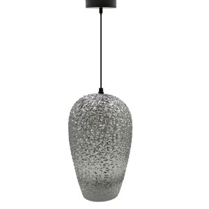 Son verre effet miroir fumé argent crée un jeu de lumière unique, où la transparence et les reflets métallisés s’harmonisent à la perfection. Le filament LED interne diffuse une lueur ambrée douce et décorative, idéale pour instaurer une atmosphère chic et feutrée sans éblouir. Ce type de suspension offre une lumière d’ambiance subtile, parfaite pour les espaces à l’esprit design.